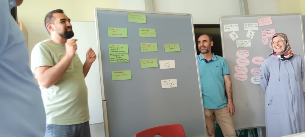 Besonders wichtig war dem Projektteam bei diesem letzten Modul, den Transfer des Gelernten in die Vereine und die Fortführung der Projektideen zu unterstützen und anzustoßen. Dabei haben wir auch über weitere Vertiefungswünsche gesprochen und über Themen bei denen ein weiterer Fortbildungsbedarf besteht-